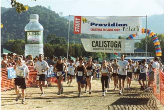 12-member teams run 30 legs (2-3/runner) or 36 legs (3/runner, 3-8 miles each) through 36 cities and across the Golden Gate Bridge at midnight in support of Organs R Us (ORU) and 125,000 Americans waiting for organ donors. Contact info.